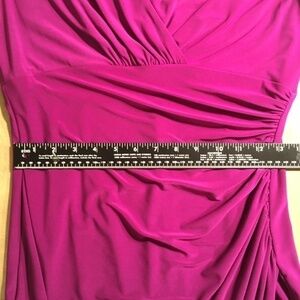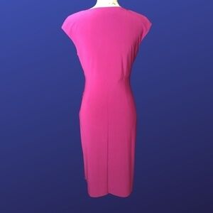 Pre-owned/LIKE NEW condition, Ralph Lauren dress in a Sexy MAGENTA color, sheath/Bodycon style, RUCHED for a most flattering fit, CAP Sleeves, Women’s Size 10.
