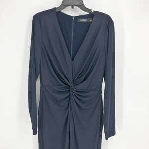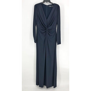 LAUREN RALPH LAUREN Evening Gown 12 Navy Blue V-Neck Maxi Dress Knot Front NWT