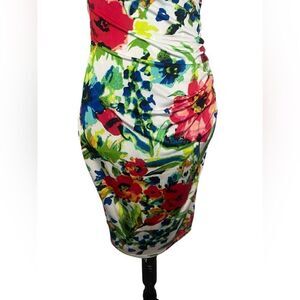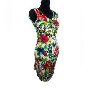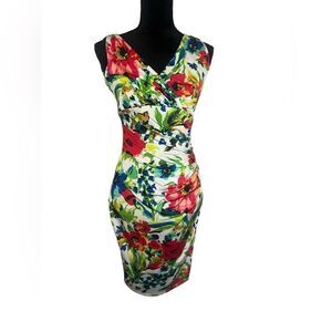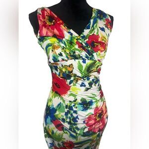 LAUREN RALPH LAUREN FLORAL JERSEY DRESS RUCHED SURPLICE KNEE LENGTH SIZE 4