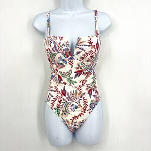 LAUREN RALPH LAUREN Fleurette One Piece Swimsuit 12 White Multi VWire NWT