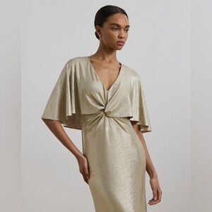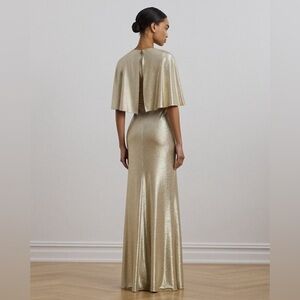 LAUREN RALPH LAUREN Foil-Print Jersey Cape Gown Wedding Bridesmaid Evening