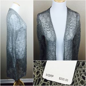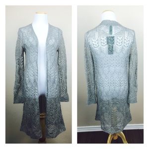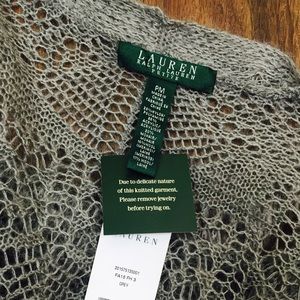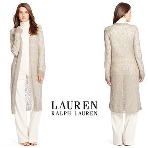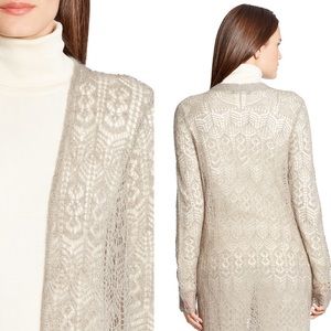 LAUREN RALPH LAUREN Gray Pointelle Mohair-wool Long Knit Cardigan Petite Medium