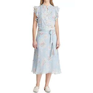 LAUREN RALPH LAUREN JANERVA TIE WAIST FLORAL DRESS FLUTTER SLEEVE SIZE 2