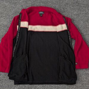 LAUREN RALPH LAUREN Jacket Men's M Red White Black Fleece Zip Track Long Sleeve