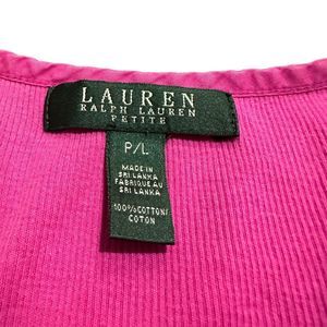 LAUREN RALPH LAUREN KNIT PINK RIBBED V NECK SHIRT PETITE SIZE LARGE