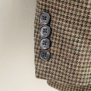 LAUREN RALPH LAUREN Men’s Brown Houndstooth 100% Wool Two Button Sport Coat 44R. Very good pre-owned condition. Very gentle signs of wear. No stains, holes or snags. All measurements are approximate.