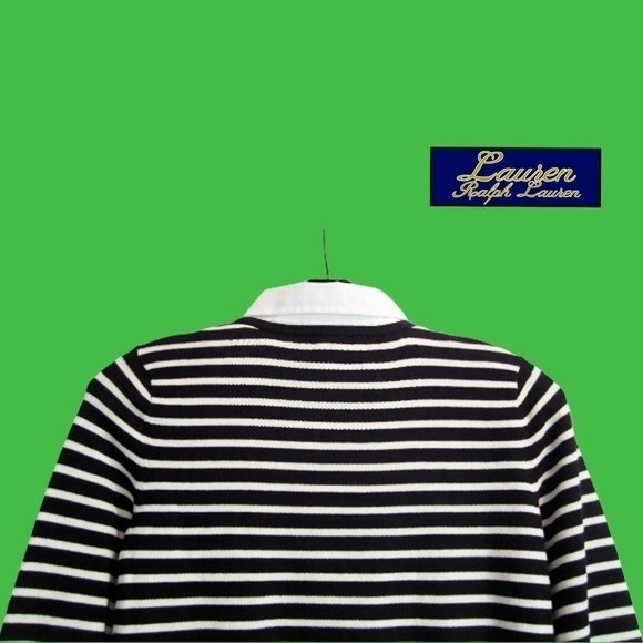 LAUREN RALPH LAUREN NEW Striped/Solid Prints Pointed Collar Sweater PL