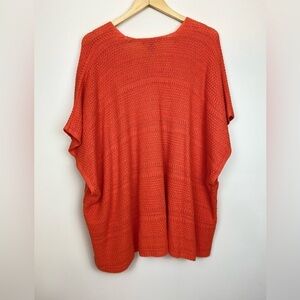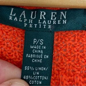LAUREN RALPH LAUREN ORANGE LINEN BLEND CROCHET OVERSIZED PONCHO PETITE SMALL