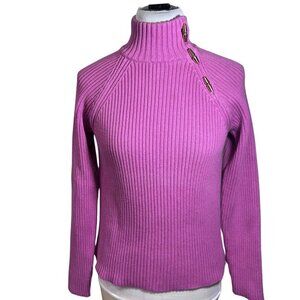 LAUREN RALPH LAUREN Pink Ribbed Turtleneck Sweater Women Medium Gold Buttons