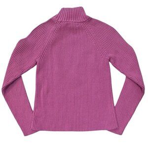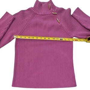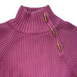 LAUREN RALPH LAUREN ~ Pink ribbed knit turtleneck sweater. Women size Medium. Raglan sleeves. Gold metal toggle button closure. Wide ribs. Super stretchy.