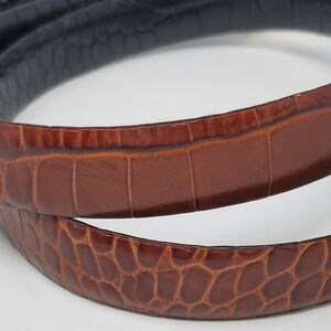 LAUREN RALPH LAUREN REVERSIBLE BLACK & BROWN TEXTURED ANIMAL PRINT BELT MEN OS