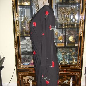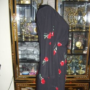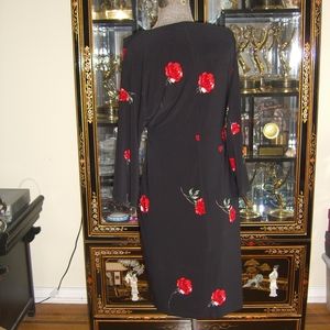 Beautiful black sheath dress with red rose print. Lined. Made of polyester and elastane. Worn once. In excellent condition.