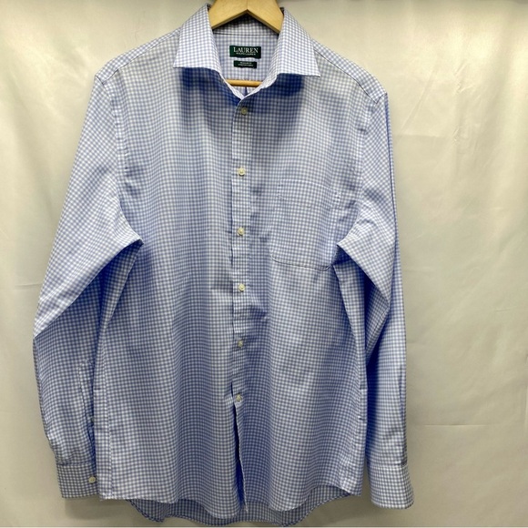 LAUREN RALPH LAUREN SHIRT MENS LG BLUE WHITE GINGAM STYLE 16.5 34/35 SPRING