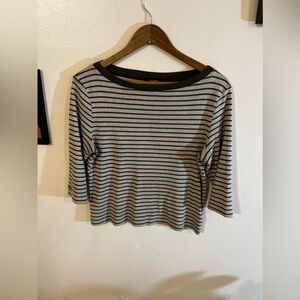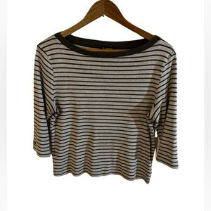 LAUREN RALPH LAUREN SWEATER TOP 3/4 SLEEVE BEIGE WITH STRIPES OLIVE GREEN L