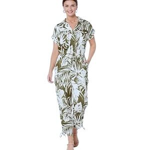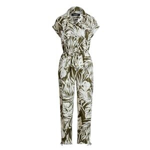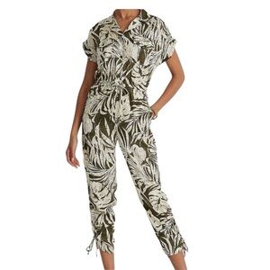 LAUREN RALPH LAUREN Safari Jumpsuit Palm Print Green/Cream Woman’s Size 16 NWOT