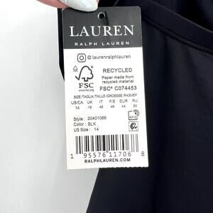 LAUREN RALPH LAUREN Solids V Wire One Piece Swimsuit Size 14 Black NWT