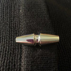 Over the head on/off. 1/4 silver toggle button close. Fold over or stand up collar.