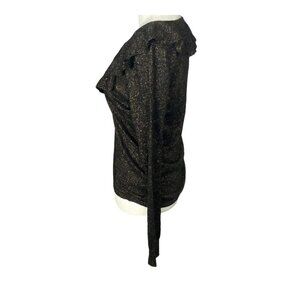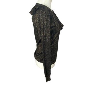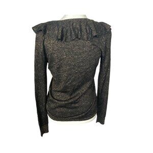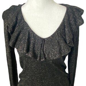 LAUREN RALPH LAUREN Sweater Ruffle V Neck Metallic Top Black Gold XS 6A-1