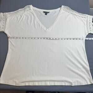 LAUREN RALPH LAUREN Top XXL V-Neck Short Sleeve Eyelet Lace Trim Resort Casual