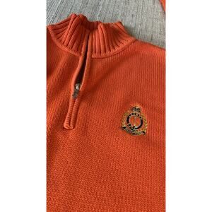 LAUREN RALPH LAUREN Vintage Stitched Monogram 1/2 Zip Sweater Orange Red S