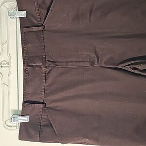 Great chocolate brown trousers. With belt loops. Straight leg. size 6. Waist flat measurement is 15.5". Inseam is 28". The top to bottom length is 39". Rise is 11/15. Consider making a bundle and get an even better offer.