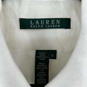 LAUREN RALPH LAUREN White 100% Linen Half Sleeve Cropped Blazer Jacket Size 8