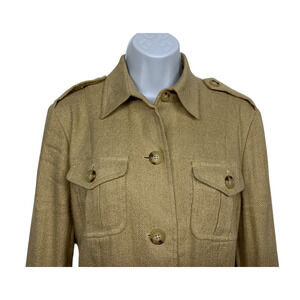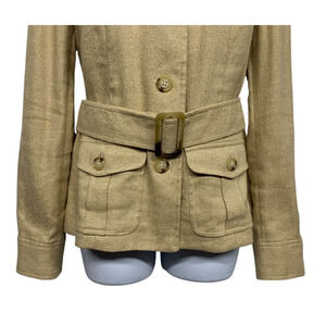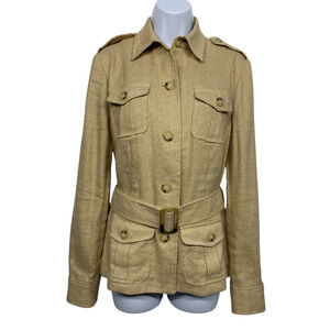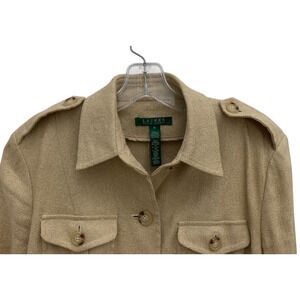 LAUREN RALPH LAUREN Women size 10 Tan Gold Metallic Linen & Silk Safari Jacket