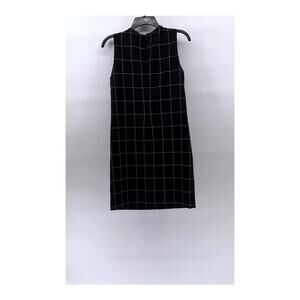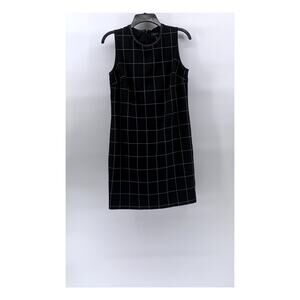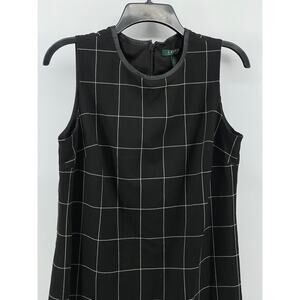 LAUREN RALPH LAUREN Women's Black Windowpane Crewneck Sleeveless A-Line Knee Length Dress SZ 6