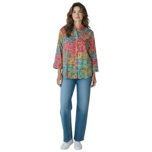 This stunning Lauren Ralph Lauren women’s blouse in size Large features a vibrant multicolor paisley patchwork print that instantly stands out. Made from 100% soft cotton, this top offers breathable comfort with a relaxed, elegant silhouette.