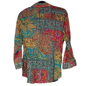 LAUREN RALPH LAUREN Women’s Blouse L Boho Paisley Patchwork Button Front Shirt