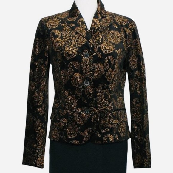 LAUREN RALPH LAUREN Women's Classic Velveteen Jacquard Fitted Blazer EUC Size 6