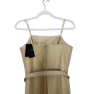 LAUREN RALPH LAUREN Womens Gold Shimmer Strapless Belted Evening Dress Gown