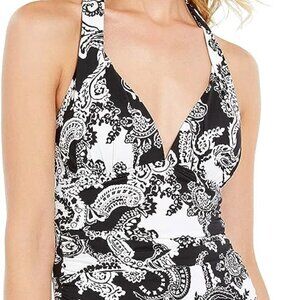 LAUREN RALPH LAUREN Womens Graphic Paisley Tummy-Control Halter Tankini Top