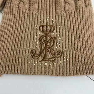 LAUREN RALPH LAUREN Women's Knit Cable Scarf Cream Crest Logo Rhinestones
