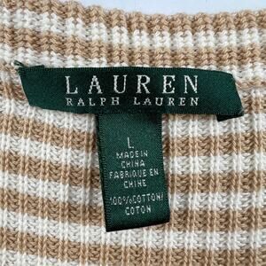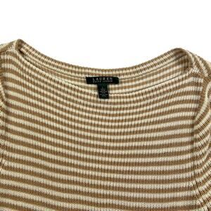LAUREN RALPH LAUREN Womens Knit Top Large Tan White Striped Cotton Half Sleeve