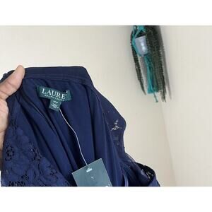 LAUREN RALPH LAUREN Womens Lace Formal Cocktail Mother of the bride Dress Navy Blue 14W v-neck New