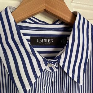 LAUREN RALPH LAUREN Women's Striped Cotton Broadcloth Shirt Large White and Blue