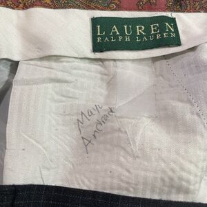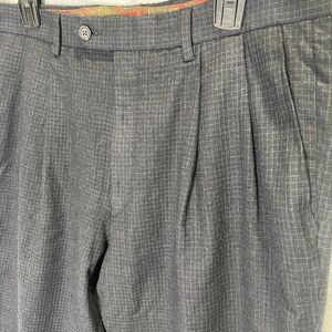LAUREN RALPH LAUREN Wool Blend Pants Pleated Cuffed Windowpane Men Waist 35 Gray