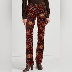 LAUREN RALPH LAUREN Women's tapestry Print Velvet High-Rise Boot Pants size 8 new