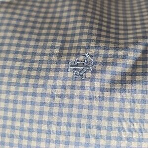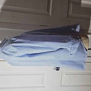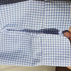 This lovely casual button-down shirt has a cuff that rolled up or down. Very good used condition and quality. Size XL. Pit to pit flat measurement is 23". Sleeves are about 20". The top to bottom length is about 27". Consider making a bundle and get an even better offer and save on shipping.