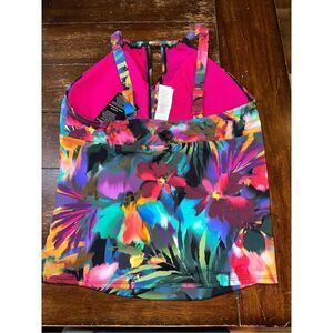 Size 16W | Multi | A tummy-control design helps smooth your silhouette in this plus size tankini top from Lauren Ralph Lauren. A gorgeous print gives the look a tropical-inspired finish.