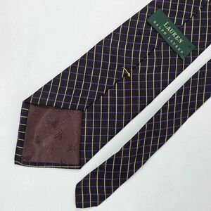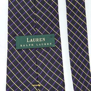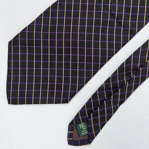 LAUREN RALPH LAUREN LRL SILK TIE BLACK PURPLE YELLOW STRIPE SATIN 4" X 58"