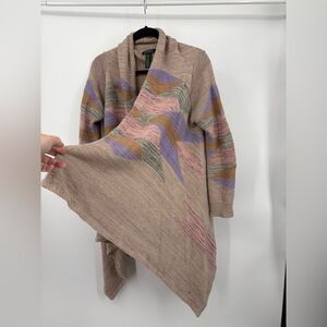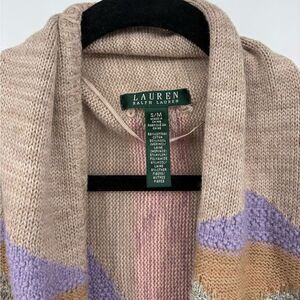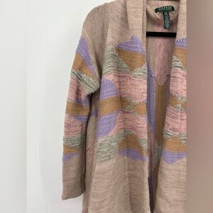 LAUREN RALPH LAUREN Long Shawl Cardigan Sweater Pastel Aztec Southwest S/M
