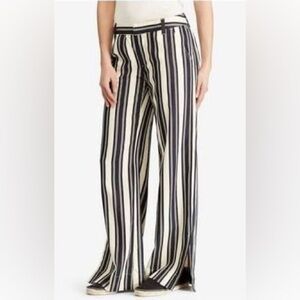 LAUREN RL Navy and beige striped twill split leg pants size 12