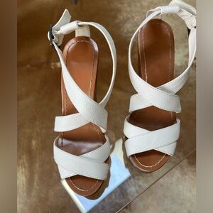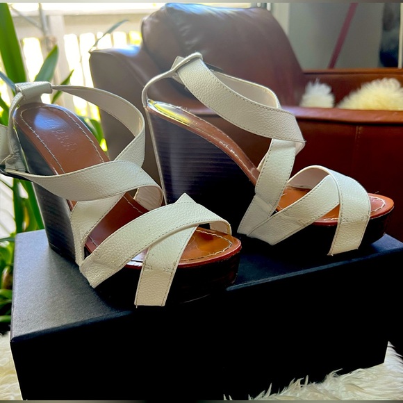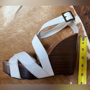 Size: 7.5 Color: White Style: Leather Straps Wedges Condition: Very Good