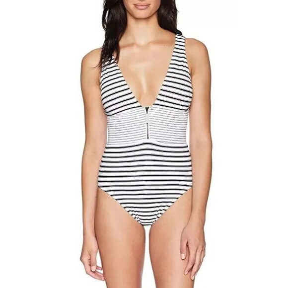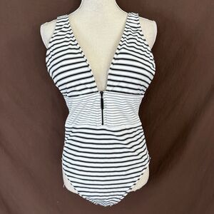 LAUREN Ralph Harrison Stripes One-Piece Swimsuit Womens Size 14