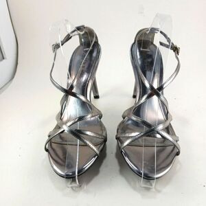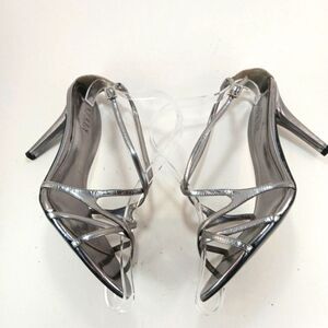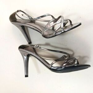 LAUREN Ralph Lauren Abriella Metallic Silver Strappy 4-inch Stiletto Size 10B.