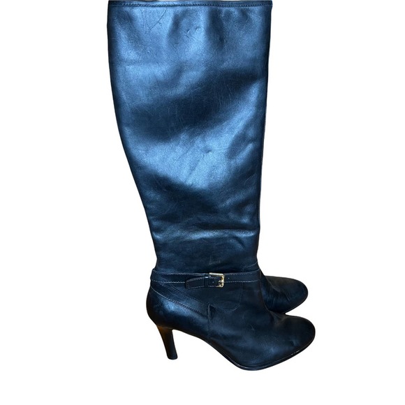LAUREN Ralph Lauren Bethan style Tall Zip Black Leather Heel Boots, size 9.5