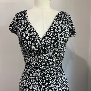 LAUREN Ralph Lauren Black Abstract Floral Surplice Dress Size 6