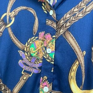 LAUREN Ralph Lauren Vintage Equestrian Print Navy Button Up Shirt